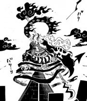 - ↑ One Piece-Manga - Lokis Geburt (Band 113) - Kapitel 1149 ~ Die Informationen, die dieses Kapitel beinhaltet, sind SpoilerIm will den Anwesenden die Kraft eines Gottes demonstrieren.