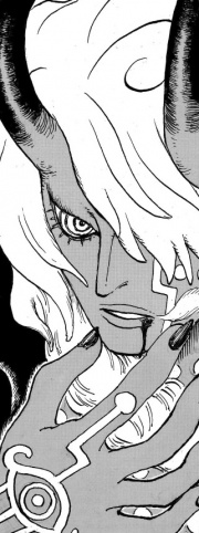 - ↑ a b c d e One Piece-Manga - Lokis Geburt (Band 113) - Kapitel 1150 ~ Die Informationen, die dieses Kapitel beinhaltet, sind SpoilerIm demonstriert an Gunko seine dämonischen Fähigkeiten.