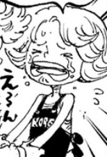 VergangenheitVor 44 Jahren arbeitete Mato bereits als Barkeeperin in der Hafenschenke in der Unterwelt von Elban. Diese wurde damals von Ida geführt, bei der Mato angestellt war. Als Prinz Loki eines Tages aus dem Meer gerettet werden musste, zeigte sich Ida ihm gegenüber freundlich, doch Loki schrie sie böse an. Mato fing deshalb an zu weinen und sagte, dass sie Loki hassen würde, da er so fies zu Ida gewesen sei.[2] Als Rocks D. Xebec ein paar Jahre später in der Schenke mit Harald sprach, war auch Mato dort wieder am Arbeiten. Mato verteilte dabei Krüge an Loki und Hajrudin.[3] Vor über 39 Jahren war Mato an Idas Seite, als Loki in der Zeitung wieder etwas über Rocks las. Ida bot dem Prinzen dabei ein Glas Saft an, was dieser trotz seiner Abneigung Ida gegenüber widerwillig annahm.[4] GegenwartAls sich die Rothaar-Piratenbande in ihrer Hafenschenke auf Elban aufhielt und Shanks Collons wiederholte Anfragen ablehnte, seiner Bande beitreten zu dürfen, munterte sie ihn auf, dass er es doch bleiben lassen solle, da er so die anderen Piratenkapitäne eifersüchtig machen würde. Anschließend unterrichtete Rockstar seinen Kapitän über die Ankunft der Kid-Piratenbande und Mato verfiel ins Schwärmen über Shanks' Besonnenheit in der Situation.[5] Nachdem die Rothaar-Piraten die Insel verlassen hatten, verkündete Collon die Ankunft der Riesenkrieger-Piratenbande mit den befreundeten Strohhut-Piraten. Diese segelten jedoch direkt zur Sonnenwelt, woraufhin Collon ihnen sogleich folgte. Mato gab dem jungen Riesen einen Korb mit Lebensmitteln für seine Mutter und seinen Vater mit auf den Weg und ließ ihn den Kapitänen der Riesenkrieger-Piraten ausrichten, dass sie zum späteren Bankett Snacks mitbringen würde.[6] Collons Mutter freute sich später sehr über die von Mato mitgegebenen Preiselbeeren.[1] Referenzen