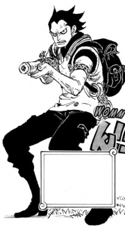 VergangenheitSuche nach GerechtigkeitMonkey D. Dragon war einst ein Marinesoldat und lernte innerhalb der Reihen der Marine einiges, fand jedoch nach eigener Aussage keinerlei Gerechtigkeit dort, weshalb er sich von der Marine und der Weltregierung abwandte.[12] Daraufhin wurde er zu einem Freiheitskämpfer und deren Anführer. Ob er die Freiheitskämpfer gründete oder sich ihnen nur anschloss und in deren Reihen zum Anführer aufstieg, ist nicht bekannt. Bereits vor über 25 Jahren waren sie aktiv und bekannt. Ein Zeitungsartikel berichtete von Dragons Taten, weshalb Bär ihn einen Helden nannte. Vor 24 Jahren war auch Dragon bei Gol D. Rogers Hinrichtung in Loguetown anwesend. Zu der Zeit besaß er jedoch noch kein Tattoo im Gesicht.[14] Gründung der RevolutionsarmeeVor 22 Jahren war Dragon noch als Anführer bei den Freiheitskämpfern aktiv. Einige Monate nach dem Buster Call auf Ohara reiste Dragon zur zerstörten Insel, um dem verstorbenen Professor Kleeblatt mit einem Blumenstrauß seinen Respekt zu erweisen. Dort traf er zufällig auf einen Bekannten: Dr. Vegapunk. Dieser beobachtete gerade, wie einige Riesen die Bücher aus dem See fischten, die die Archäologen während des Buster Calls dort hineingeworfen hatten, um sie vor dem Feuer zu bewahren. Dragon klärte ihn darüber hinauf, dass die Riesen von Elban stammten und den Wert der Bücher erkannt hatten, im Gegensatz zur Weltregierung. Im Laufe des Gesprächs kündigte Dragon an, eine eigene militärische Organisation aufzubauen, die in der Lage war gegen die Verbrechen der Weltregierung anzukämpfen. Er wollte die Welt verändern, damit Kleeblatts Tod und Oharas Wille nicht umsonst waren.[8] Noch im selben Jahr begaben sich die Freiheitskämpfer ins Königreich Sorbet im Southblue, um den korrupten König Bekori zu stürzen, der einen Teil vom Königreich ausgliederte und deren Bewohnern, zumeist alte und arme Menschen, damit alle Rechte entzog, sodass sie sogar versklavt werden konnten. Dabei befreiten sie auch Bartholomäus Bär, Ginny und Gyogyo, die gegen den König rebellierten und inhaftiert wurden. Ginny und Bär schlossen sich den Freiheitskämpfern an und mit Dragon, Ivankov und Bär als die drei Säulen formierten sich die Freiheitskämpfer in die Revolutionsarmee um.[3] Vor 19 Jahren bekam er mit einer unbekannten Frau seinen Sohn Monkey D. Ruffy. Ruffy lernte seinen Vater jedoch nicht kennen und wusste bis Water Seven gar nicht, dass er überhaupt einen hat. Dies lag daran, dass Kinder die Schwachstelle eines jeden Elternteils sind und Ruffys Leben, aber auch die Ziele der Revolutionäre in Gefahr geraten wären, wenn die falschen Kreise über seinen Sohn Bescheid gewusst hätten. Entsprechend musste Dragon dies verheimlichen. Gemäß Ivankov schaute Dragon an der frischen Luft jedoch immer Richtung Eastblue, als ob er dort etwas zurückgelassen hätte[6] und auch Bartholomäus Bär bemerkte etwas. So reiste Dragon häufig ins Windmühlendorf und beobachtete Ruffys Werdegang aus dem Schatten heraus.[7] Vor vierzehn Jahren erfuhr Dragon dann, dass Ginny entführt wurde.[3] Mission im Königreich GoaVor etwa zwölf Jahren war Dragon im Königreich Goa anwesend, als der König das Gray Terminal niederbrennen lassen wollte. Damit wollte er den Schandfleck entfernen, da in kurzer Zeit ein Weltaristokrat eintreffen würde. Dabei wandte sich Sabo an den Rebellenführer und jemand trat an diesen heran und verkündete ihm, dass die Vorbereitungen für seinen Plan abgeschlossen sein würden.[15] Später sah man ihn und seine Revolutionäre auf einem Schiff auf das brennende Gray Terminal zufahren. Dabei schien es so, als hätte jemand eine Straße in das Flammenmeer geschossen, sodass auch die im Feuer gefangenen das Schiff, und damit ihre letzte Rettung sahen. All diese, welche das Schiff erreichen konnten, wurden von Dragon als Revolutionsarmee angeheuert und kämpften fortan auf seiner Seite für Freiheit.[9] Er rettete auch den jungen Sabo, dessen Schiff zuvor von einem Weltaristokraten versenkt wurde, und nahm ihn auf.[16] Sie hielten kurz in Shimotsuki und luden Proviant an Bord, bevor sie sich auf die Heimreise nach Bartigo machten.[17] Zur selben Zeit konnten die Revolutionäre auch in Tumi einen Erfolg verbuchen und den dortigen Aufständischen zum Sieg verhelfen. Allerdings wurden sie kurz darauf von der entführten Ginny kontaktiert. Diese wurde mit einem Weltaristokraten zwangsverheiratet und wollte sich nur verabschieden, da sie krank war. Sie starb schließlich an der Saphir-Schuppen-Krankheit und hinterließ mit Jewelry Bonney eine Tochter, um die sich dann Bär kümmerte. Einige Jahre später brach aber auch bei ihr die Krankheit aus und Bär trat aus den Revolutionären aus, um sich um Bonney zu kümmern. Dragon zeigte Verständnis und sicherte ihm bei der Suche nach Ärzten seine Hilfe zu.[18] Vor etwa neun Jahren übernahm Dragon persönlich die Ausbildung Sabos, da Hack ihm bereits nichts mehr beibringen konnte.[19] Die Weltkonferenz 1533Vor acht Jahren fand in der Heiligen Stadt Mary Joa eine Weltkonferenz statt. Ein Tagespunkt war der Rebellenführer, vor dem König Tarassa Lukas von Ishiria warnte. Wapol sah in Dragon keine Gefahr und war sichtlich genervt von der in seinen Augen unnötigen Konferenz. Der genaue Ausgang ist jedoch unbekannt.[11] Vor etwa vier Jahren trafen die Revolutionäre an Bord der Viento Granma auf offener See auf ihren ehemaligen Kameraden Bartholomäus Bär, der auf der Suche nach einem Heilmittel für Bonney verschiedene Orte ansteuerte. Dragon erzählte ihm von der Gefangennahme Ivankovs und Inazumas. Es kam aber auch der Posten des Kommandanten der Armee des Ostens zur Sprache, den einst Ginny innehatte. Belo Betty hatte ihn ins Auge gefasst, aber Dragon hatte den Posten nicht neu besetzt und eine Neubesetzung an die Bestimmung verknüpft, dass Bär zustimmt, was er dann auch tat. Anschließend erzählte er Bär vom Marine-Wissenschaftler Vegapunk, dass dieser vertrauens