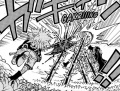 VorgeschichteWährend des Aufenthaltes der Strohhutbande auf Elban tauchten plötzlich mehrere Ritter der Götter auf der Insel auf, mit dem Auftrag, das Volk der Riesen dem Willen der Weltregierung zu unterwerfen. Dazu entführten sie zehn Riesen-Kinder und zwangen den Ältesten Jarul durch diese Geiseln dazu, die Bibliothek und die Schule der Riesen niederbrennen zu lassen. Hörend, dass damit die Geschichte Elbans, sowie die ebenfalls dort gelagerten Erkenntnisse der Archäologen von Ohara verloren gehen würden, zögerte Nico Robin keinen Moment und attackierte kurzentschlossen einen der Ritter namens Shepherd Sommers, da ebendieser mittels der Kräfte der Dornen-Frucht dafür verantwortlich war, dass niemand die Kinder berühren und somit befreien konnte. Der KampfSo überraschte sie den nichtsahnenden Sommers direkt mit einem Volltreffer ihrer Technik "Cien Fleurs, Craspedia" und brach ihm daraufhin direkt mittels ihrer Attacke "Cuatro Mano, Clutch" das Rückgrat. Aufgrund seiner scheinbaren Unsterblichkeit erholte sich Sommers allerdings schnell von seinen Verletzungen, doch hatte Robin damit längst gerechnet. Während sich der Ritter regenerierte, stürzte sich die Piratin auf ihn und warf sich mit ihm zusammen von dem übergroßen Ast, auf dem sie sich gerade befanden. Im freien Fall ließ Sommers schließlich Dornen aus seinem Körper sprießen, welche Robin mehrfach durchbohrten, doch stellte er dabei fest, dass es sich nur um eine Kopie der Archäologin handelte, deren eigentliches Ziel es war, Sommers so weit von den Kindern zu entfernen, bis seine Teufelskräfte nicht mehr wirken. Da sich Sommers jedoch mit einer dicken Dornenranke vor einem Absturz bewahrte, schlug dieser Plan letztlich fehl und der Ritter konnte auf den Ast zurückkehren. Als er nun wiederum Robin attackieren wollte, tauchte plötzlich Scopper Gaban am Ort des Geschehens auf, da auch sein Sohn zu den Entführten zählte. Mittels seiner mächtigen Axt schlug er dem überrumpelten Sommers eine Hand ab, wobei der Ritter entsetzt feststellen musste, dass er sich aus unbekannten Gründen diesmal nicht regenerieren konnte. Als ihm Gaban den Rest geben wollte, schützte sich Sommers jedoch mittels seiner Technik "Ibaria" und konterte daraufhin mit seinen Dornenangriffen "Ibarush" und "Guren Jigoku". Beiden konnte "die linke Hand des Piratenkönigs" allerdings spielend ausweichen und stattdessen Sommers mit seiner Attacke "Futenraku" in zwei Hälften zerteilen. Somit war der Weg für Gaban weiter in Richtung der Kinder frei. |