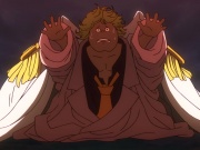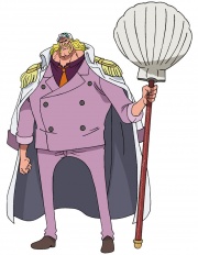 - ↑ One Piece-Manga - Abenteuer in Elban (Band 111) - Kapitel 1125 ~ Die Informationen, die dieses Kapitel beinhaltet, sind SpoilerDie Vizeadmiräle werden Zeuge von Saturns Tod.