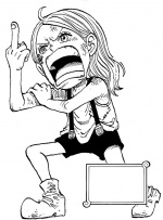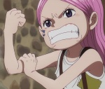 | Der Mittelfinger, den Jewelry Bonney den anderen Kindern zeigt, ist im Anime nicht zu sehen.
