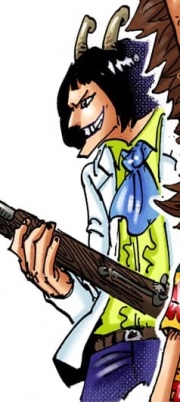 Die Allianz zur Ermordung eines YonkoIn der Nacht vor der Hochzeit initiierte Jinbei ein Treffen zwischen Capone und Ruffy, welche eine Allianz schließen wollten, um Big Mom zu stürzen. Caesar verkleidete sich zu diesem Zweck mehr schlecht als recht und gab sich als 'Gangster Gastino' (jap. ギャングスターガスティーノ, Gyangusutā Gasutīno) aus, auch wenn die meisten Anwesenden seine Verkleidung schnell durchschauten.[44] Die Anwesenden verloren sich in kleineren Kabbeleien, welche von Jinbei jedoch wieder geschlichtet wurden, der die Anwesenden daran erinnerte, dass sie alle ein gemeinsames Ziel in Form von Big Mom hatten, wodurch sie zur Besinnung gebracht wurden.[43] Caesars Anteil am Plan war vor allem die Herstellung der sogenannten KX-Raketenwerfer, die mit einem tödlichen Gas ausgestattet wären, das bei richtigem Gebrauch Big Mom augenblicklich töten sollte. Ebenso sollte der Wissenschaftler den Fluchtplan ermöglichen und im Austausch für seine Dienste endlich nach zahlreichen Wochen sein Herz und damit seine Freiheit zurückerlangen.[45]
