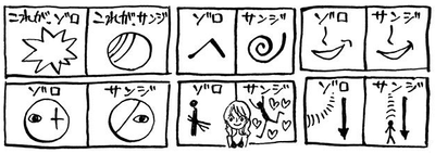 Kapitel 756L: Oda-Sensei, Ihr Faible für große Möpse ist ja pathologisch und insofern kann man nichts dagegen machen, aber da der Reiz von Frauen nicht nur in ihren Brüsten liegt, habe ich sehnsüchtig auf den Tag gewartet, an dem einmal eine flachbrüstiger weiblicher Chara auftauchen würde. Und nun... Kann es sein, dass dieser Tag endlich gekommen ist?! Ja, das Mitglied der De Flamingo-Family, das sich der wohlgeformtesten Beine rühmt, jene Dellinger, 16 Jahre! Ist es möglich, dass sie tatsächlich der erste flachbrüstige weibliche Chara in "One Piece" ist?! Pseudonym: "Auch ich bin eine Ehefrau" L: Oda-Sensei!! Guten Tag! In Kapitel 747 benutzt Koala eine Teleschnecke mit dem Geräusch "Patsch". Ist das eine spezielle Videoschnecke? Oder gibt es dafür einen anderen Namen wie "Fotoschnecke" oder so? Bitte verraten Sie mir das!! Pseudonym: "Samurai Ryota" Kapitel 757L: Oda-Chi! Frage!! In der Whitebeard-Piratenbande gibt es keine Frauen, oder? Das beschäftigt mich! Pseudonym: "Apfel" L: Oda-Sensei. Ich habe da ein Problem!!! Meine Familie kapiert den Unterschied zwischen Zorro und Sanji nicht!!! Bitte zeigen Sie, wie man die beiden auseinanderhalten kann, und zwar mit so eindrücklichen Bildern, dass auch sie es verstehen und nie wieder vergessen.