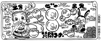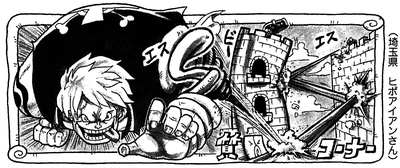 Kapitel 776L (Leser): Oda-Chi... Als ich heute mein Zimmer aufräumte, fand ich einen Zettel, den Corazon vor langer Zeit dort hingelegt haben muss... als ich ihn sah, musste ich jedenfalls irgendwie an Corazon denken. Schnief... (heul) ich möchte, dass Du den Zettel auch siehst, deshalb schicke ich ihn Dir. Pseudonym: "Mirukuru" O (Oda): Uooh (heul), Cora-San... Die FPS... hat doch schon begonnen!! L: Wenn ich kohlensäurehaltige Getränke in einem Zug austrinke, bekomme ich Magenschmerzen. Was soll ich machen? Pseudonym: "Ich mag Hund" L: Ich wollte Eltern für Pandaman erschaffen... also hab ich's getan! Ich bitte um Ihre Billigung!!! Pseudonym: "Kanahasa" Kapitel 777L: Es kommt etwas plötzlich, aber ich habe eine Frage, Oda-Chi: Wie kommt es, dass es unter den Charakteren bei "One Piece" so auffällig viele gibt, deren Mutter unbekannt oder bereits gestorben ist? Pseudonym: "Dunkelblau" L: Ich habe eine Frage. Der kleine Gimlett aus Kapitel 755, das ist der Cocktail "Gimlet", oder?! Sind Sie am Ende auch ein Fan von Raymond Chandler? Oder lieben Sie einfach nur Alkohol? (Lol) Pseudonym: "Laws zweiter Gehilfe" L: Mir ist aufgefallen, dass Robin riesige Brüste hat. Als ich dann nachschaute, stellte ich fest: Auch Nami hat riesige Brüste! Wieso haben sie alle beide riesige Brüste? Mögen Sie das, Herr Oda? Das ist eine Frage von zwei Zehnjährigen. Pseudonym: "Saku-Chan und Yuzu-Chan" Kapitel 779L: Guten Tag. Wie geht es Ihnen? Mir geht es gut. Ich habe eine Frage zu meinem geliebten Onepiece*. Ich weiß einfach nicht, ob Blumenmuster oder ungemustert. Ich mag Blumenmuster, aber weil sich eine erwachsene Frau ungemustert auch sehr gut in Szene setzen kann, frage ich mich, ob das nicht besser wäre. Was meinen Sie, Oda-San? Pseudonym: "Der unverwundbare Haruharu-Sama" Hinweise: