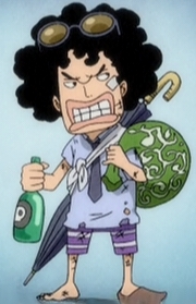 Nach der SchlachtNach der Schlacht erklärten sowohl Senghok als auch Garp ihren Rücktritt. Somit wurde die Stelle des Flottenadmirals frei. Senghok traf sich auf ein letztes Gespräch mit seinem Vorgänger Kong, bei welchem "der Buddha" Kuzan als seinen Nachfolger vorschlug. Später unterhielt sich Kuzan mit Smoker über dessen Interesse, auf die Marinebasis G-5, einen der problematischsten Stützpunkte in der Neuen Welt, verlegt zu werden.[5] Austritt aus der MarineWie Jinbei zwei Jahre später berichtete, beanspruchte Sakazuki die Position des Großadmirals für sich. Kuzan hatte zwar kein großes Interesse an dieser Position, doch konnte er es nicht zulassen, dass Akainu das Oberkommando über die Marine erhielt. Um herauszufinden, wer von ihnen der neue Großadmiral des Marinehauptquartiers werden sollte, kam es auf einer Insel zum Duell zwischen beiden. Dabei sollte der Sieger die umstrittene Position erhalten. Am Ende des zehn Tage andauernden Duells unterlag Kuzan seinem Gegner. Aus Respekt vor seinem ehemaligen Kameraden verschonte Sakazuki allerdings dessen Leben. Kuzan wollte nicht länger bei der Marine sein, wenn Sakazuki die Kontrolle über diese hatte und trat so von seinem Posten als Admiral zurück.[6] Er traf auf den Super-Pinguin Camel, der ihn fortan begleitete.[39] Etwa ein Jahr später traf Kuzan auf einer bestimmten Insel auf die Blackbeard-Piraten. Anfangs fror er Blackbeards Untergebene noch ein, doch tranken sie anschließend und hatten Spaß zusammen. Trotz immer wieder angespannten Momenten gelang es Blackbeard, Kuzan zu überzeugen, sich seiner Bande anzuschließen.[40] Auftauchen auf Punk HazardNachdem Don Quichotte de Flamingo auf Punk Hazard aufgetaucht war, um die Strohhut-Bande zu treffen, musste er feststellen, dass diese bereits abgereist war. Zu seiner Freude waren aber Smoker und die Soldaten aus G-5 noch anwesend. Jene versuchte er erfolglos zu erpressen, um Informationen zu erhalten. Als er dem verschwiegenen Smoker den Rest geben wollte, trat der ehemalige Admiral Kuzan in Erscheinung.[41] Er fror Flamingo ein und rettete Smoker so das Leben. Nach einem kurzen Wortwechsel mit De Flamingo befahl er den anwesenden Soldaten, die Versorgung von Smokers Wunden. Flamingo fragte Kuzan, was mit ihm geschehen sei, da es keine guten Gerüchte über ihn gebe. Nachdem Flamingo abgereist war, warnte er Smoker vor jenem. Dieser sei nämlich das größte Hindernis, seit Sakazuki das neue Hauptquartier der Marine eröffnet hat.[42] Kuzan und BlackbeardWährend eines Telefonates im Corrida Kolosseum unterhielten sich Teach und Jesus Barges über Kuzan. Barges vertrat die Ansicht, dass man ihm aufgrund seiner Vergangenheit bei der Marine nicht trauen könne. Teach war jedoch anderer Meinung, denn schließlich könnte man was Ähnliches von Shiryuu, dem ehemaligen Kommandanten der Wärter von Impel Down, behaupten.[43] Nach Ruffys Sieg über Don Quichotte de Flamingo stellte Flottenadmiral Sakazuki die Fünf Weisen zur Rede wegen der inszenierten Falschmeldung zu De Flamingos Rücktritt von seinem Rang als Samurai der Meere. Nach einer heftigen Auseinandersetzung fragte einer der Weisen, was mit Kuzan sei und seinem Bündnis mit Blackbeard. Daraufhin antwortete Sakazuki nicht weniger aggressiv, dass es nicht länger ein Problem der Marine sei.[44] Später las er auf einer Insel in der Zeitung über die erneuten Kopfgelderhöhungen der Strohhutbande, während Camel im Hintergrund zu sehen war.[45] Nach Big Moms Niederlage auf Onigashima überfiel Kuzan gemeinsam mit Wan Oger, als Mitglied der Blackbeard-Piratenbande, Cacao in Totland.[46] Der ehemalige Admiral fror dabei die gesamte Stadt inklusive Charlotte Cracker ein und entführte Charlotte Pudding. Kuzan und Wan Oger begaben sich daraufhin mit ihrer Geisel wieder zu einem Schiff der Blackbeard-Piraten.[47] Schüler gegen LehrerKuzan war anwesend, nachdem Blackbeard Kapitän Corby entführt und nach Hachinosu gebracht hatte. Blackbeard erklärte dem jungen Marinesoldaten seinen Plan, ihn als Druckmittel zu benutzen, um die Marine und die Weltregierung dazu zu bewegen, Hachinosu zu einer von der Regierung anerkannten Nation zu machen. Als Corby erwiderte, dass er zu SWORD gehöre, erklärte Kuzan seinem Kapitän, was es damit auf sich hatte.[48] Einige Wochen später erschien schließlich Garp mit SWORD- und anderen Marine-Einheiten, um seinen Schützling Corby zu befreien. Es kam zum Kampf zwischen Garp und Kuzan, allerdings hatte Garp zunächst die Oberhand und schlug Kuzan durch den Boden.[49] Garp bekam es in der Folge auch mit weiteren Blackbeard-Piraten zu tun, dennoch gelang es der Marine die zuvor gefangenen Marinesoldaten und Zivilisten von der Insel zu evakuieren, sodass nur noch Garp, Corby, Helmeppo und Prince Grus übrig waren. Kuzan richtete sich aber auf und erklärte, dass er Garp nicht gehen lassen dürfe. Garp wollte sich darum kümmern und den dreien die Flucht ermöglichen, doch wurde er zuvor von Shiryuu durchbohrt, nachdem Corby auf eine Falle hereingefallen war. Im anschließenden Kampf gelang es Kuzan, Garp zu Boden zu bringen.[50] Schließlich gelang der Marine tatsächlich die Flucht, lediglich Garp blieb zurück und wurde gefangen genommen. Mit einer Eislanze durchbohrt lag der Vizeadmiral lachend auf dem Boden, umkreist von den anwesenden Blackbeard-Piraten.[51] Verschiedenes