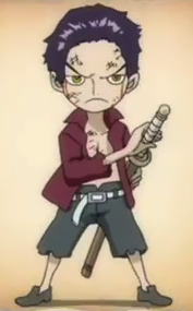 PersönlichkeitMihawk ist ein sehr kühler Mann, der um seine Stärken Bescheid weiß. Er weiß immer genau, welche Gegner wie stark sind, was vermutlich von seiner Erfahrung kommt. So sagte er auch zu Zorro, wie wenig ihn ein Kampf mit ihm interessiert. Doch kann er seine Meinung auch ändern, wenn er beeindruckt wird. Nach dem Kampf mit Zorro sagte er zu diesem, dass er weiter trainieren solle, um ihn später noch einmal herauszufordern und eventuell sogar zu besiegen, da er von Zorros starken Willen sichtlich beeindruckt war. Auch nimmt er meistens nur Einzelkämpfe an, wenn sie eine Herausforderung darstellen, beispielsweise lehnt er Shanks' Angebot ab, da er nicht gegen einen einarmigen "Krüppel" kämpfen will. Während des Kampfes gegen die Whitebeard-Bande suchte Mihawk auch die Herausforderung, indem er Whitebeard mit einer Schnittwelle angriff. Seiner eigenen Aussage nach wollte er sehen, wie groß der aktuelle Kräfteunterschied zwischen ihm und Whitebeard ist.[6] Entgegen seinem eher besonnenen Charakter kann er allerdings auch gewalttätig werden, wenn er verärgert wird. Gemeinsam mit Sir Crocodile malträtierte er Buggy bereits einige Male, etwa als er zum Anführer ihrer Organisation ernannt wurde oder ihr Flaggschiff den Kopf Buggys als Galionsfigur zeigte.[4] Durch seine fast freundschaftliche Beziehung zu Shanks hat er auch viel über Ruffy gehört und stellte sich ihm nur ungern zum Kampf. Seine Pflicht verlangte dies aber von ihm.[7] Fähigkeiten und StärkeFalkenauge gilt als der stärkste Schwertkämpfer der Welt. In seinem Besitz ist das Black Sword, Yoru, eines der 12 besten Schwerter überhaupt, den so genannten Drachenschwertern. Dieses beherrscht er so perfekt, dass er sogar einzelne Pistolenkugeln im Flug umleiten kann. Im Kampf legt er außerdem eine ungewöhnliche Geschwindigkeit an den Tag, welche möglicherweise auf die Technik Soru zurückzuführen ist. In der Vergangenheit hat er sich erbarmungslose Gefechte mit dem späteren Kaiser Shanks geliefert, doch die Ergebnisse sind noch unbekannt. Ist dem weltbesten Schwertkämpfer langweilig, so stört es ihn nicht, einfach 50 Schiffe von Don Creeks Armada zu versenken, um sich ein bisschen zu amüsieren. Auch konnte er Zorro, der damals schon einen Ruf als Kämpfer im East Blue hatte, fast ausschließlich mit einem kleinen Dolch besiegen.[8] Zudem kann Falkenauge mit seinem Schwert Schnittwellen erzeugen. Er schleuderte eine davon gegen Whitebeard. Diese war sogar größer als die Moby Dick und der Aussage einiger Marinesoldaten nach die stärkste Schnittwelle der Welt. Trotzdem konnte "Diamond" Jozu den Angriff dank seiner Teufelskraft abwehren.[6] Ein weiteres Mal bewies er seine Stärke, als Ruffy einem seiner Angriffe auswich und sich einige hundert Meter hinter ihm ein riesiger Eisberg teilte. Des Weiteren war es für ihn kein Problem, die Bewegungen von Ruffy im Gear 2 nachzuvollziehen und ihn zu treffen. Selbst eine Gum-Gum-Jet-Bazooka musste der Strohhutpirat stoppen, da er wusste, dass Falkenauge ihm trotz seiner Geschwindigkeit die Hände abgeschnitten hätte.[9] Im Kampf gegen Jazz Boner bewies er außerdem, dass er mit Leichtigkeit Eisen schneiden kann.[10] Mihawk beherrscht das Rüstungs- und Observationshaki.[11] Konzentriert er sein Rüstungshaki auf seine Klinge, kann er sie vor Schäden schützen, seine Durchschlagskraft verstärken und Gegner mit Logiakräften effektiv bekämpfen.[12] VergangenheitGol D. Rogers HinrichtungZu einem unbekannten Zeitpunkt erlitt Falkenauge einen großen Verrat und entwickelte gegenüber der Marine einen Groll. Infolgedessen erhielt Falkenauge den Beinamen "Marinejäger". Das prägte auch seinen Charakter, was vermutlich zu seinem Misstrauen gegenüber anderen und seinem bevorzugten Leben in Einsamkeit führte.[13] Auch Mihawk war bei Gol D. Rogers Hinrichtung vor 24 Jahren anwesend. Erst zu einem unbekannten Zeitpunkt nach Rogers Tod wurde Falkenauge zu einem der Samurai der Meere.[14] Er hatte sich der Gruppierung angeschlossen, um nicht mehr von der Marine gejagt zu werden und dahingehend Ruhe zu haben.[13] Leben auf KuraiganaNachdem im Königreich Shickeahru auf der Insel Kuraigana vor sieben Jahren alles Leben im Krieg ausgelöscht wurde, nistete sich Falkenauge auf dem einzigen nicht in Schutt und Asche liegenden Schloss ein. Dieses diente ihm von diesem Tag an als zu Hause.[15] Vor über vier Jahren besuchte Bär auf seiner Suche nach einer Heilung für Jewelry Bonney auch Kuraigana. Ob Falkenauge hier aber bereits sesshaft war oder er ihn angetroffen hat, ist nicht bekannt.[16] Vor etwa dreieinhalb Jahren hatte Mihawk gerade ein Schiff zerstört, als er von Bärs Ernennung zum Samurai der Meere in der Zeitung las.[17] GegenwartAuf dem BaratiéNachdem er auf der Grand Line die gesamte Armada vom Paten des East Blue, Don Creek, versenkt hatte, verfolgte er dessen letztes Schiff bis in den East Blue, da er über Langeweile klagte. Creek, der mit dem verbliebenen Teil seiner Crew das Baratié angriff, erzählte mit Schauder über die übermenschliche Kraft Falkenauges und vermutete hinter dieser eine Teufelskraft. Mitten im Gefecht zwischen der Mannschaft des Baratié, der Strohhut-Bande und Creeks Piratenbande tauchte plötzlich Falkenauge auf seinem kleinen Schiff auf, von welchem aus er die Dreadnaught Sabre zersäbelte. Überrascht erkannte Zorro den Samurai der Meere an dessen markantem Blick. Sofort forderte der Piratenjäger den Besten der Besten zu einem Duell heraus. In diesem greift Zorro auf verschiedenste Attacken zurück, die aber allesamt keine Chance gegen den nur mit einem Dolch bewaffneten Falkenauge hatten. Als dann auch noch zwei von Zorros drei Schwertern zerbrechen, gibt er sich geschlagen und lässt sich von Mihawk, der inzwischen doch mit seinem richtigen Schwert kämpfte, aufschlitzen.[18]